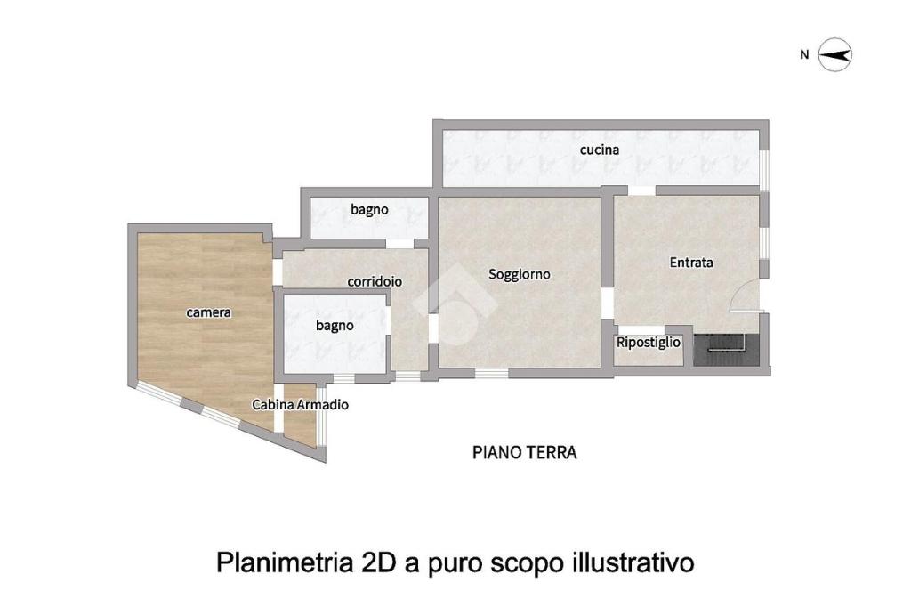 L’immobile si sviluppa su due livelli. Al piano terra l’ingresso conduce a una cucina abitabile, funzionale e luminosa, affiancata da un accogliente soggiorno perfetto per la vita quotidiana e un locale ripostiglio. La zona notte comprende una spaziosa camera matrimoniale con cabina armadio e due bagni, pensati per garantire praticità e comfort.