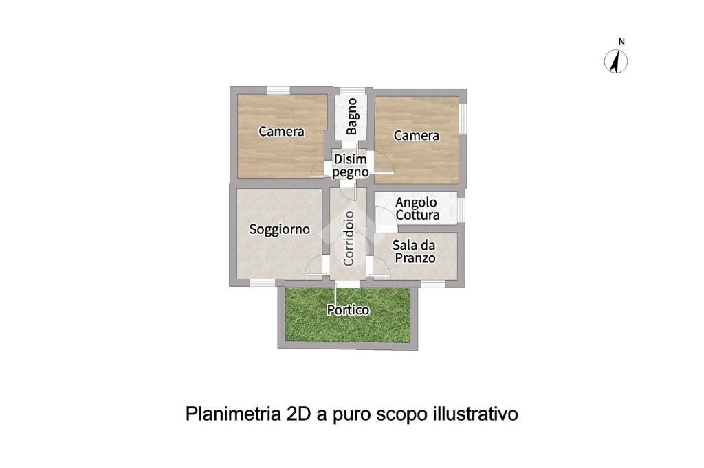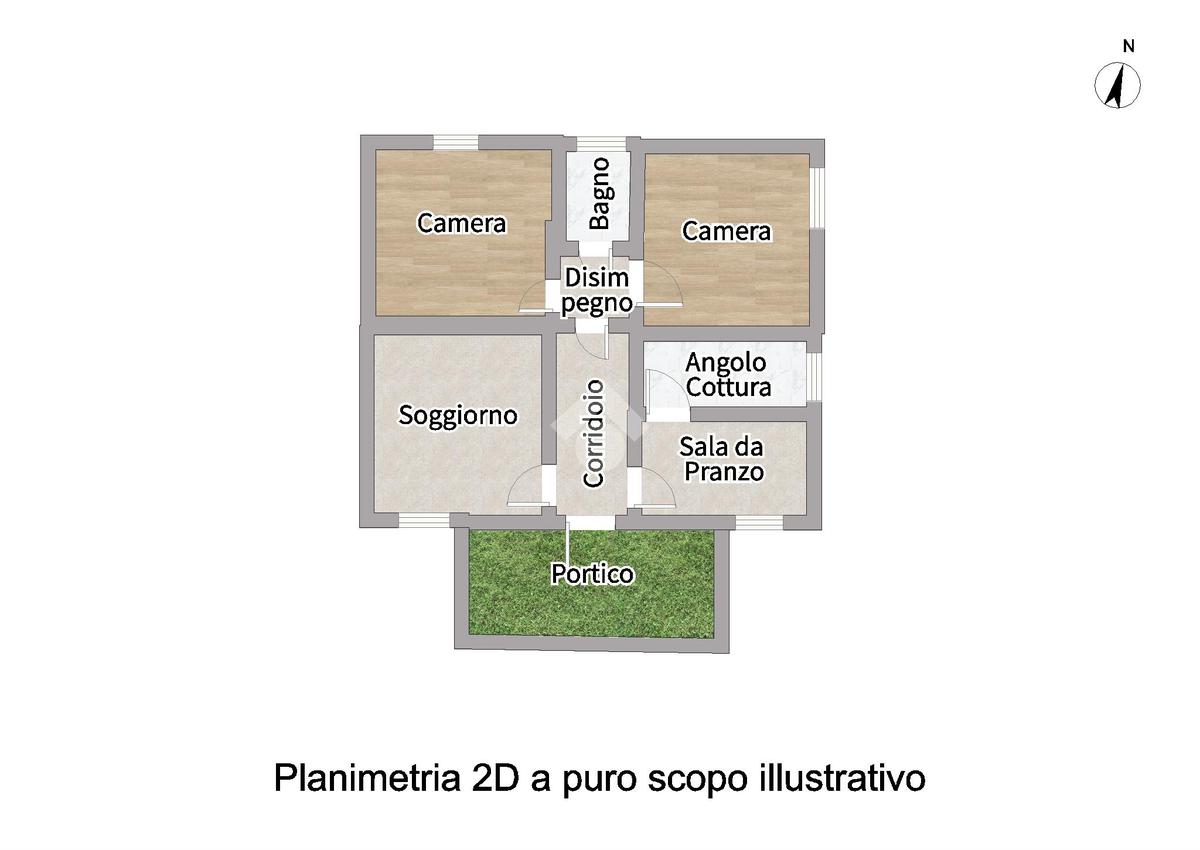 Al piano terra troviamo un accogliente portico, perfetto per momenti all’aperto, una comoda zona giorno con angolo cottura e camino, soggiorno, due camere da letto e bagno finestrato con vasca.