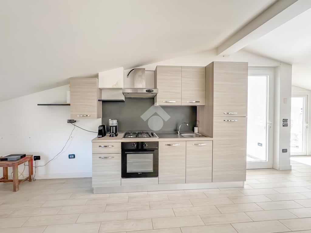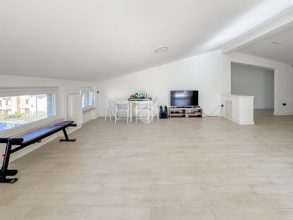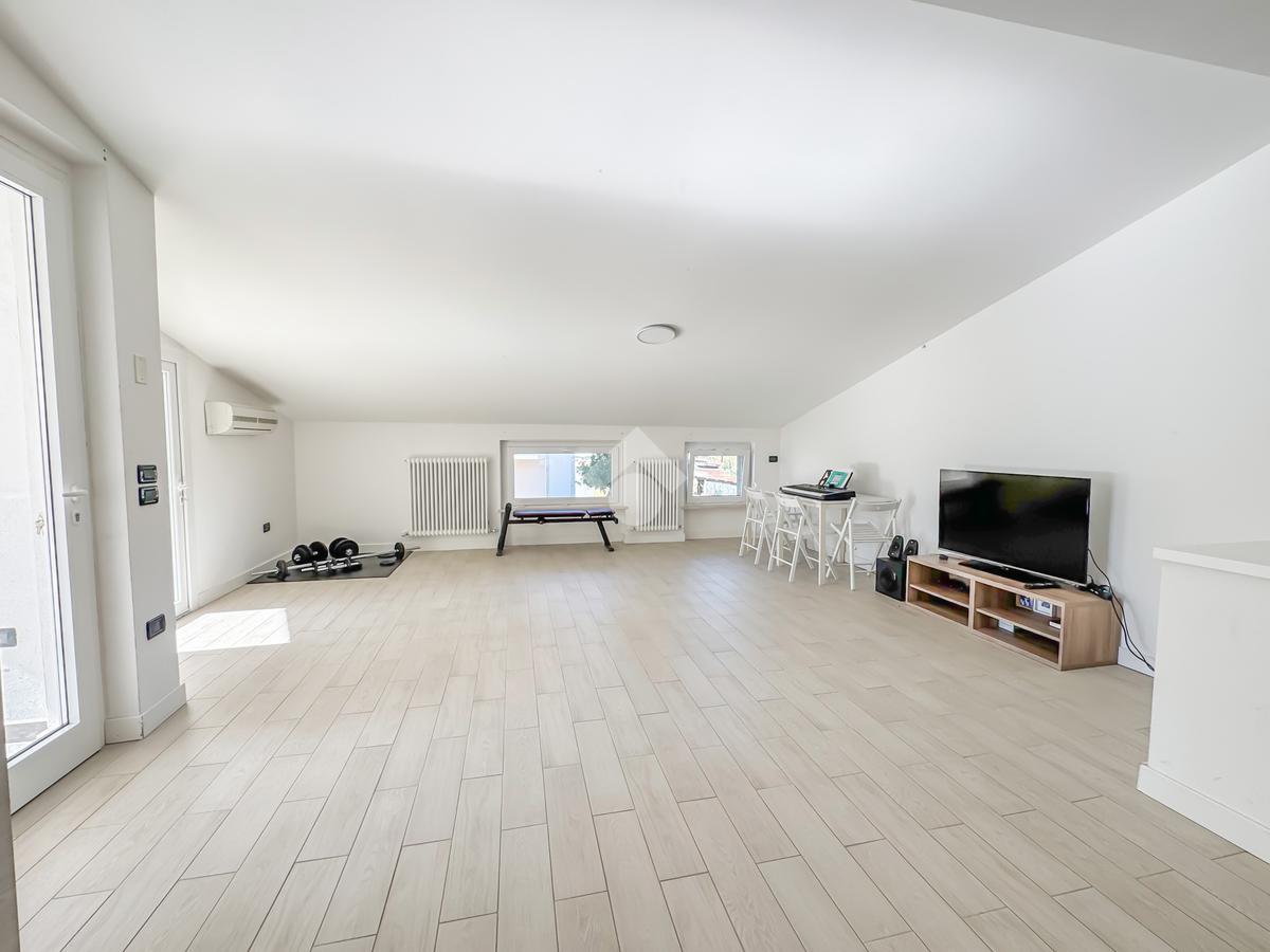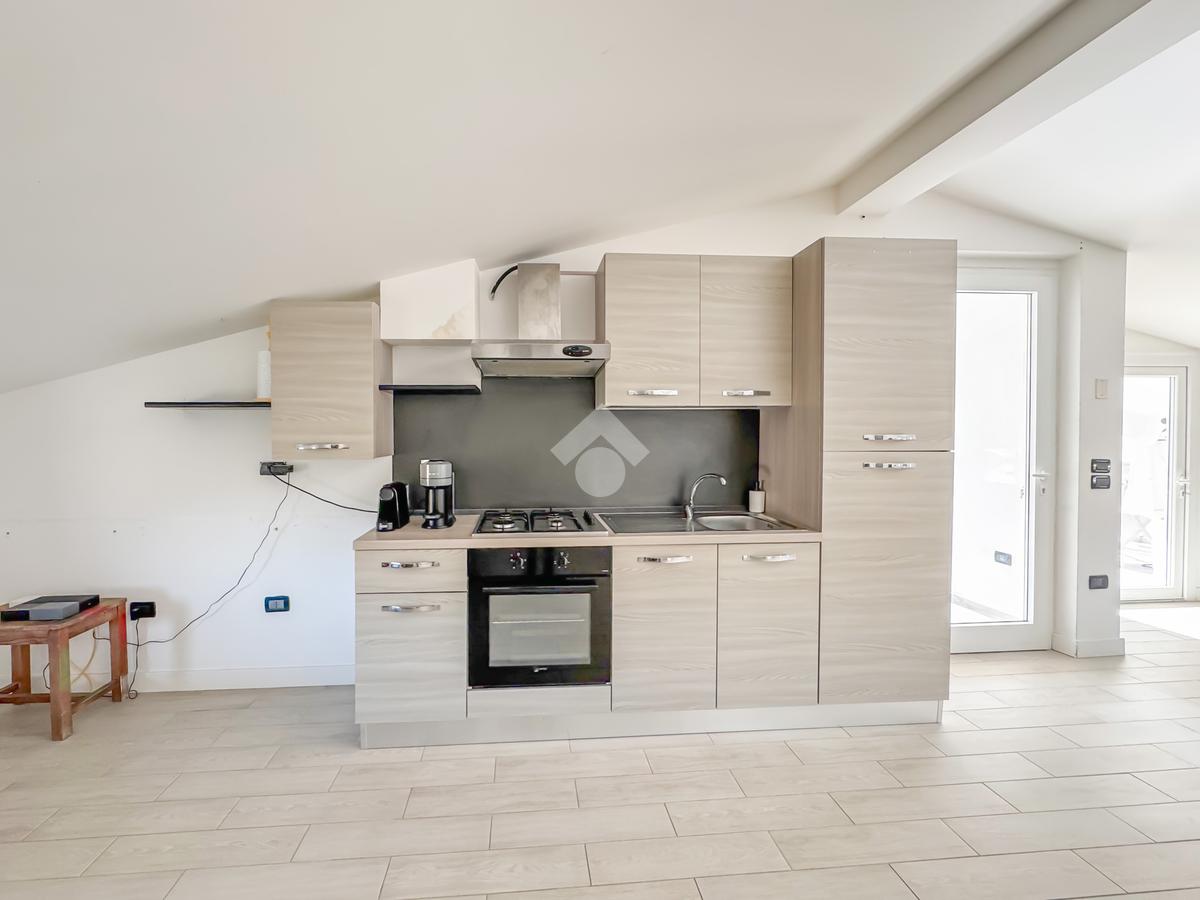L’ingresso conduce in una luminosa zona giorno open space, composta da cucina moderna e soggiorno molto spazioso.
