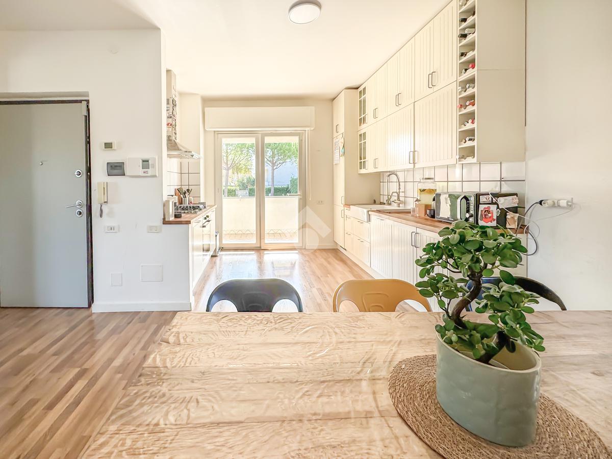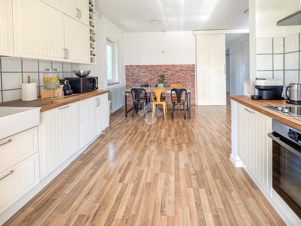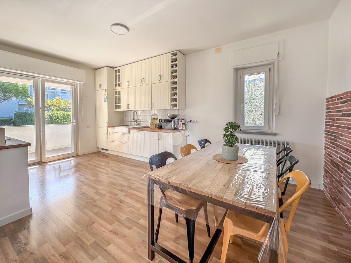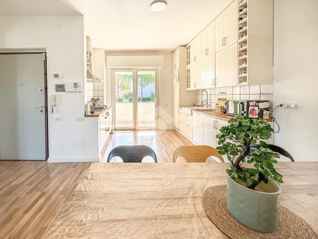 L’ingresso conduce in una luminosa zona giorno open space, composta da cucina moderna e soggiorno molto spazioso.