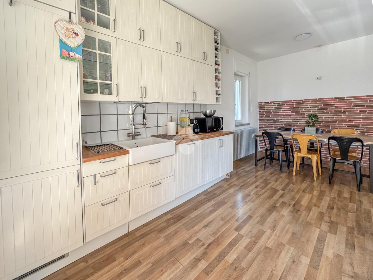 Al piano superiore troviamo una confortevole zona giorno con angolo cottura, resa particolarmente luminosa dalla presenza di una veranda che si affaccia direttamente sul living. La zona notte include due camere da letto e un bagno finestrato con vasca.