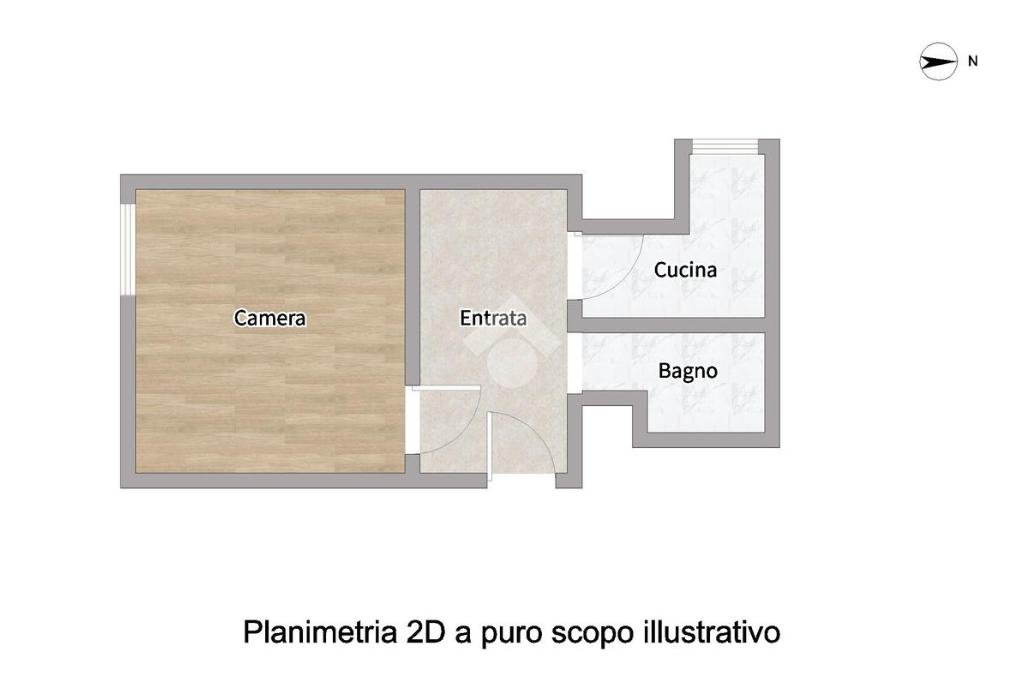 L'immobile vede la seguente distribuzione interna: ingresso, cucina, bagno con box doccia e infine una camera matrimoniale.