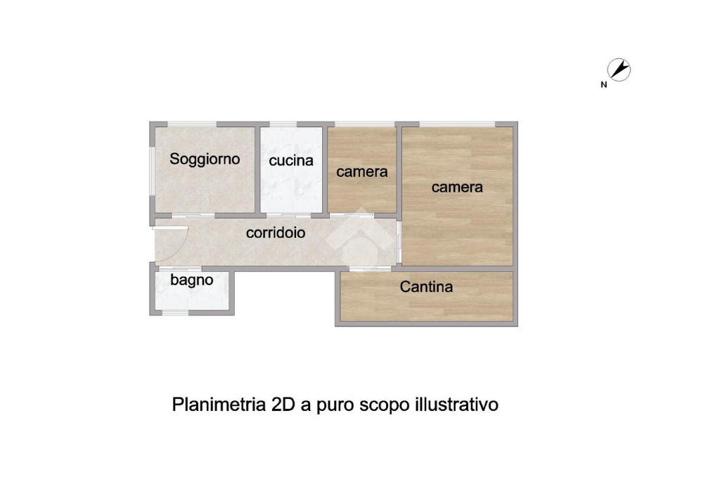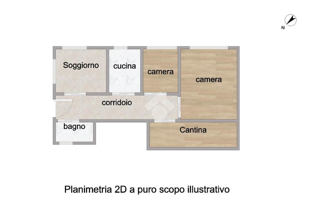 L'immobile vede la seguente distribuzione interna: ingresso, soggiorno con uscita su cortile, cucina abitabile, due camere da letto di cui una presenta anch'essa un'uscita su cortile, un bagno finestrato con vasca e infine un locale cantina.