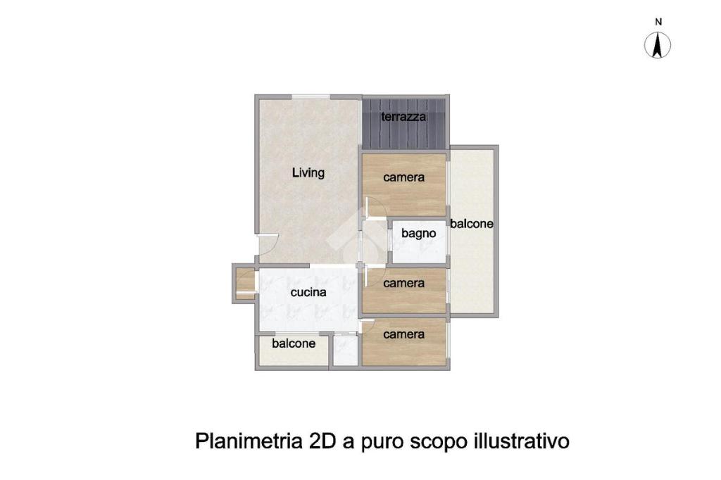 L'immobile vede la seguente distribuzione interna: ingresso, soggiorno con affaccio su terrazzo con vista panoramica, cucina abitabile, tre camere da letto di cui due presentano un affaccio su balcone, un bagno finestrato con box doccia, un wc e infine un ripostiglio.
