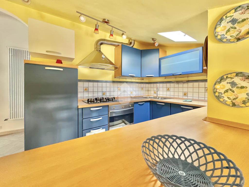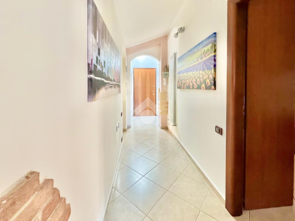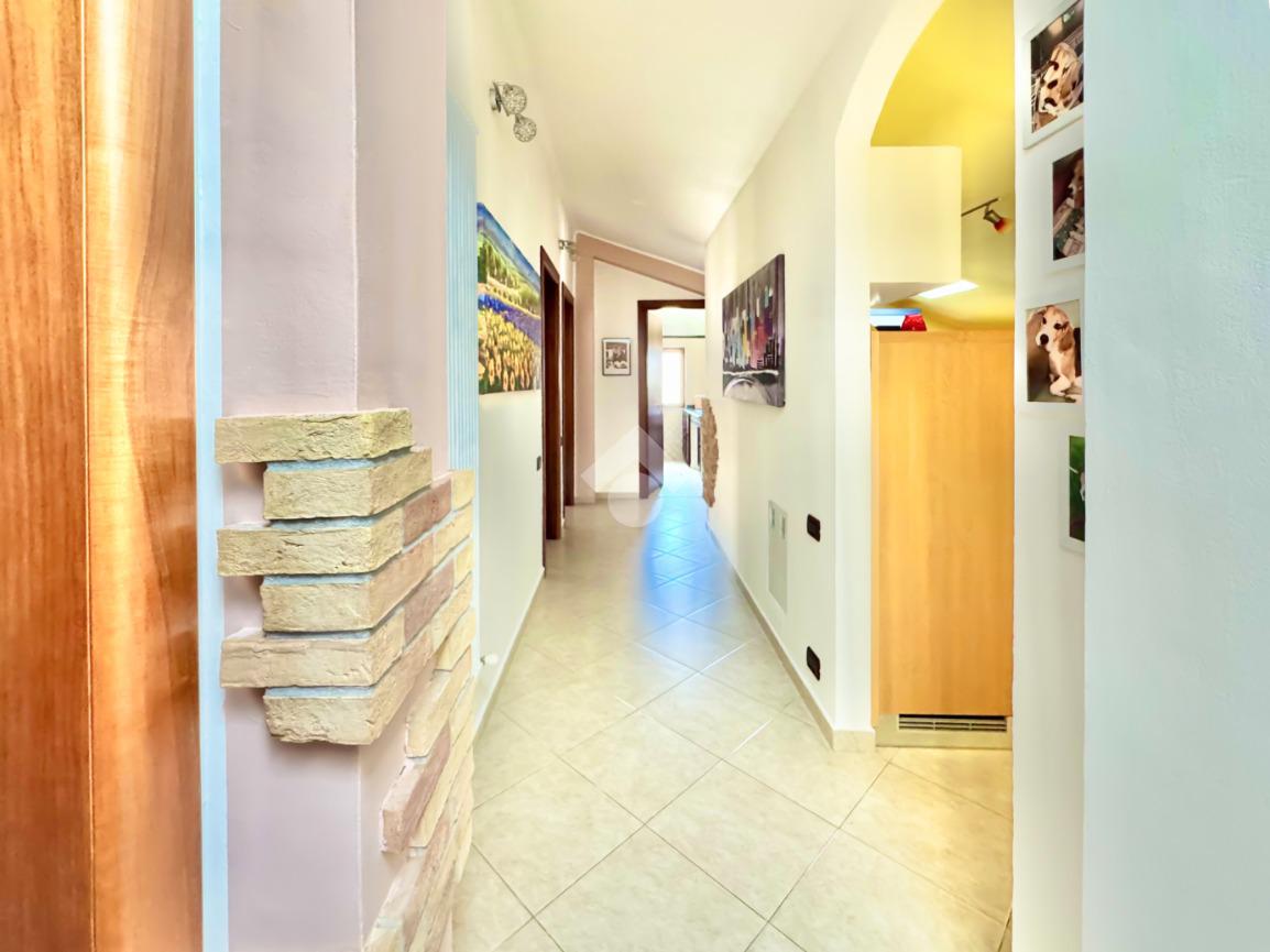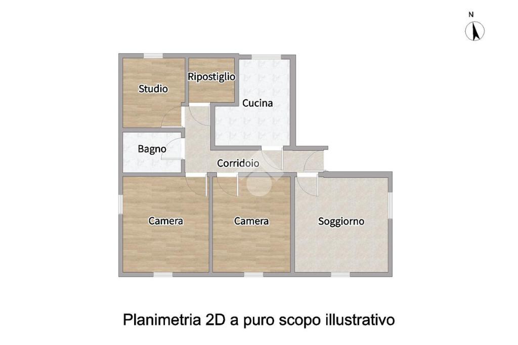 L'immobile vede la seguente distribuzione interna: ingresso, cucina abitabile, soggiorno, due camere da letto, stanza uso studio, ripostiglio e bagno finestrato con box doccia.