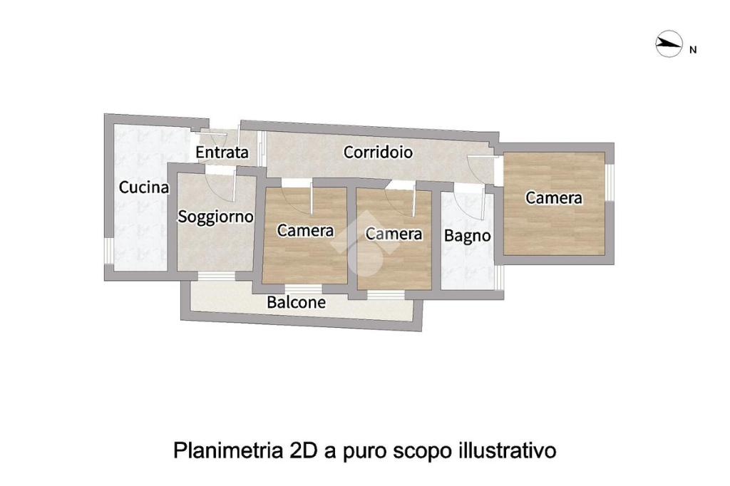 L'immobile vede la seguente distribuzione interna: ingresso, cucina abitabile, soggiorno con affaccio, tre camere da letto due delle quali presentano un affaccio e infine un bagno finestrato con vasca.