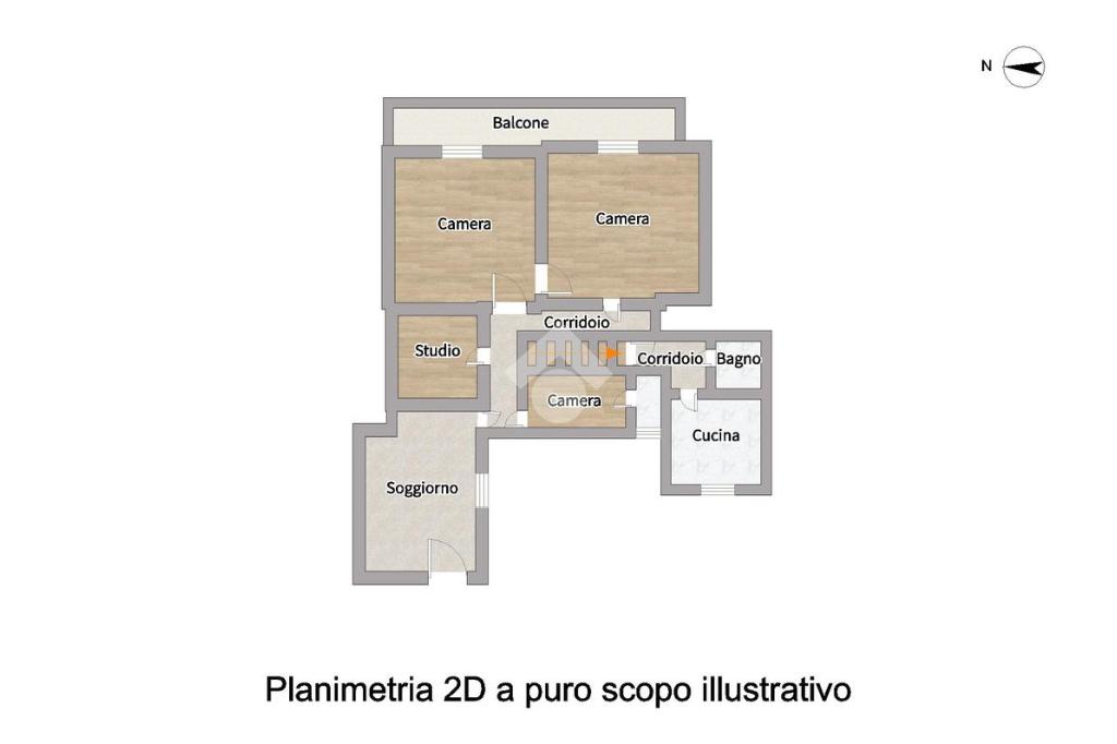 Dallo spazio comune dell'androne della palazzina si accede attraverso una scalinata all'ingresso dell'appartamento. Appena entriamo troviamo la zona giorno; un disimpegno ci porta alle prime due camere matrimoniali di cui una con bagno finestrato con box doccia ed entrambe con affaccio sul balcone, troviamo una terza camera ed una stanza ad uso studio o si può adibire a camera. Una scalinata interna collega alla cucina con la presenza del secondo bagno finestrato con box doccia.
