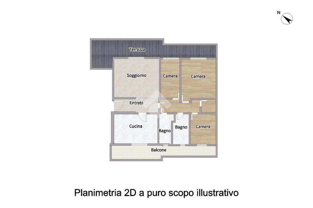 L'immobile vede la seguente distribuzione interna: ingresso, cucina abitabile con affaccio su balcone, soggiorno con affaccio su terrazzo, tre camere da letto tutte con affaccio, due bagni finestrati uno con vasca e l'altro con box doccia e infine un ripostiglio.