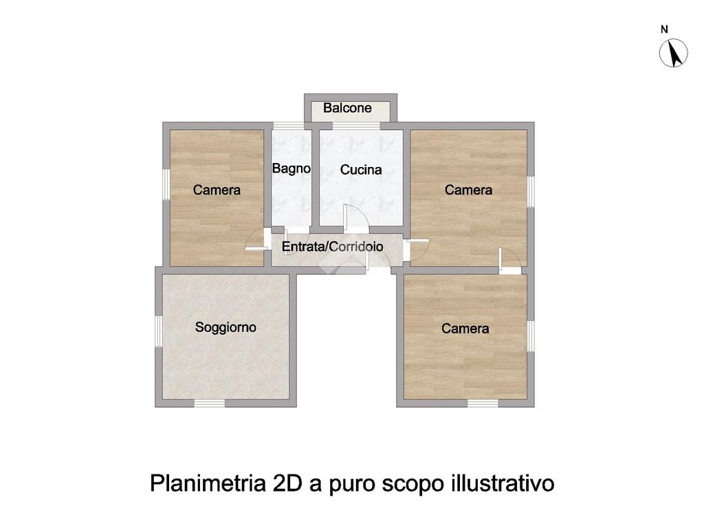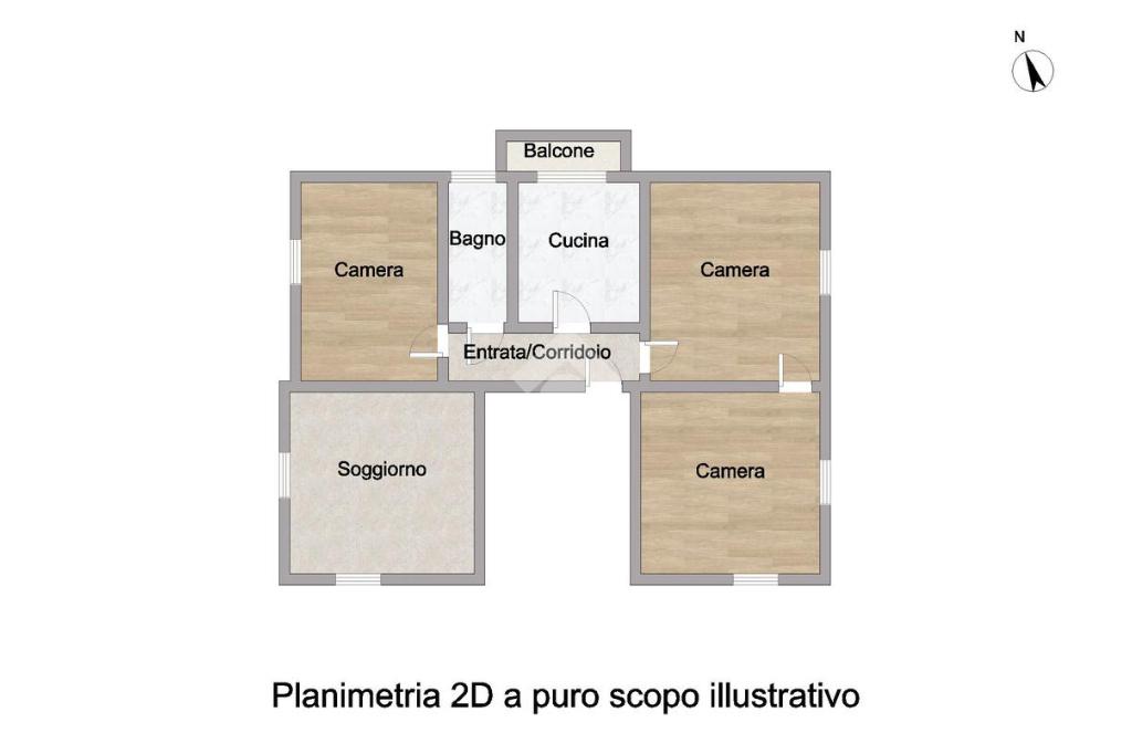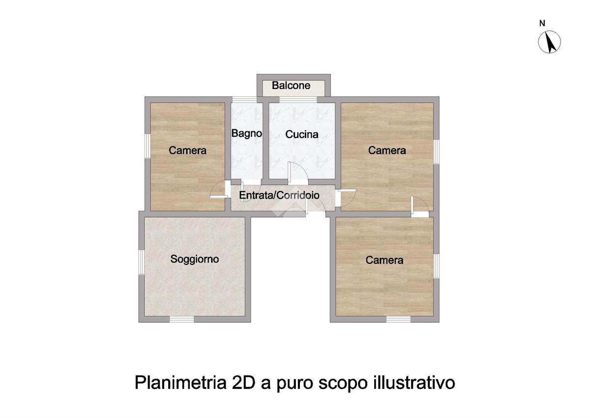 L'immobile vede la seguente distribuzione interna: ingresso/corridoio, cucina abitabile con affaccio su balcone, soggiorno, tre camere da letto e infine un bagno finestrato con vasca.