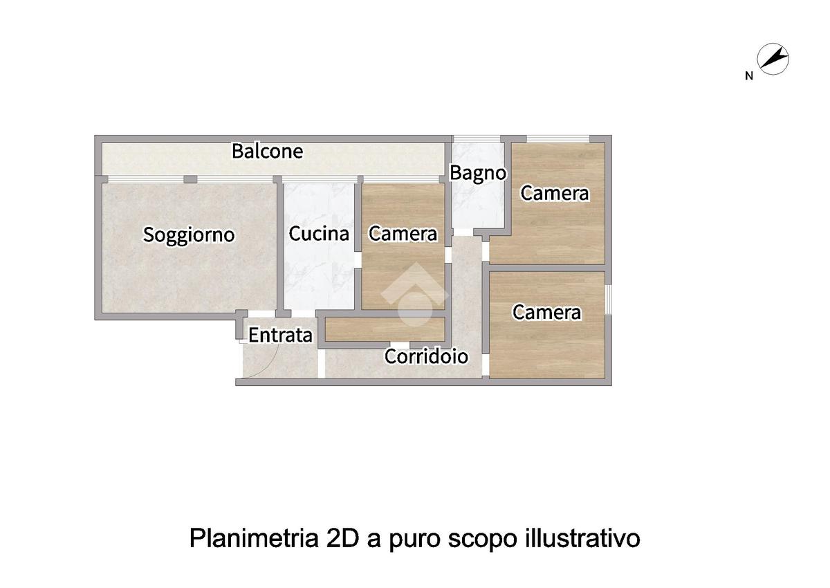 L'immobile vede la seguente distribuzione interna: ingresso, cucina abitabile con affaccio su balcone, soggiorno anch'esso con affaccio, tre camere da letto di cui una con affaccio, ripostiglio e infine un bagno finestrato con vasca.