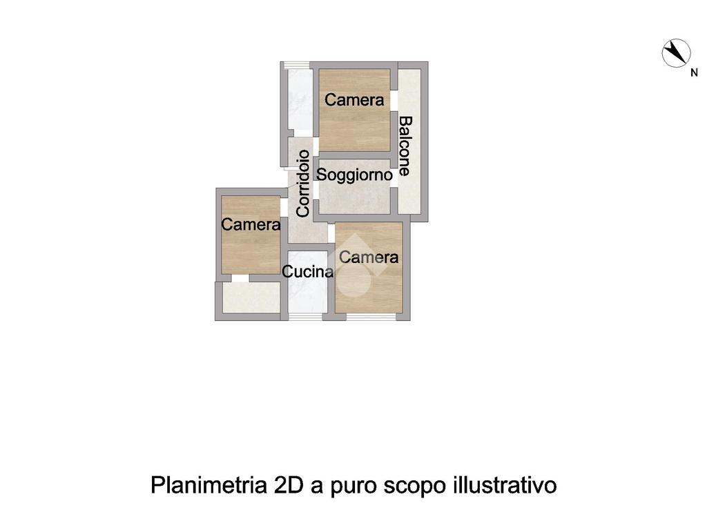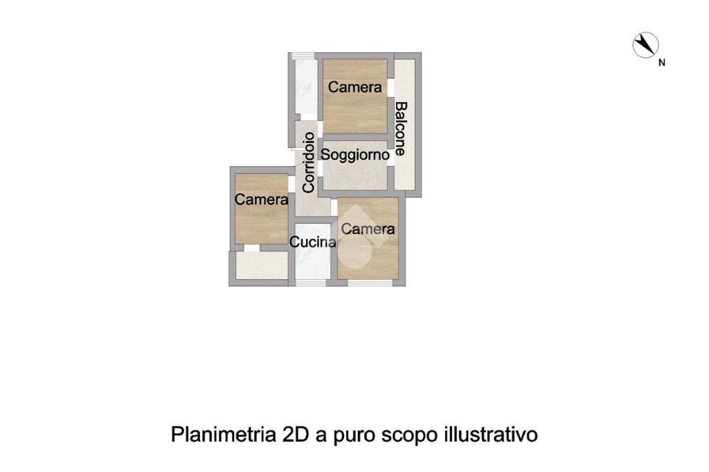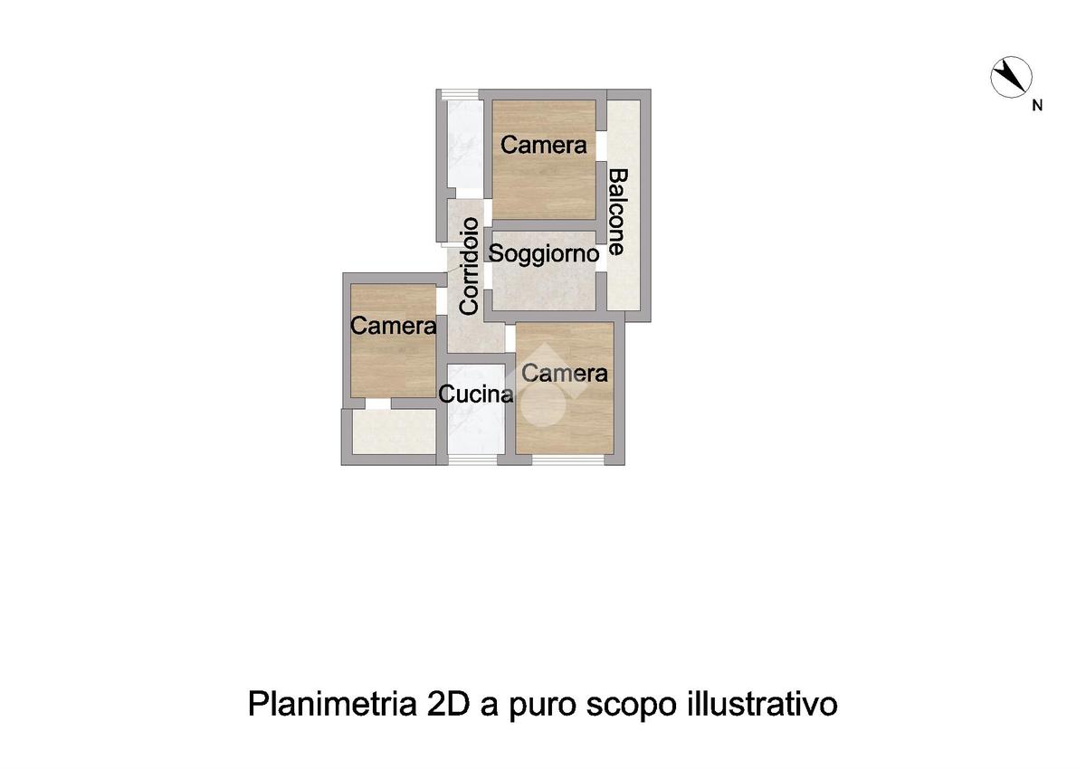 L'immobile vede la seguente distribuzione interna: ingresso, cucina abitabile, soggiorno con affaccio su balcone, tre camere da letto una della quale presenta un affaccio e infine un bagno finestrato con vasca.