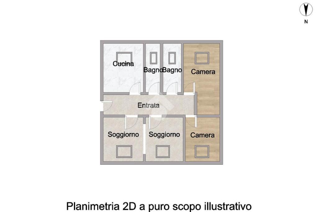 L’immobile si distingue per gli ambienti luminosi ed è così composto: ingresso, cucina abitabile, doppio soggiorno, due bagni entrambi finestrati, uno dotato di vasca e l’altro di doccia.
