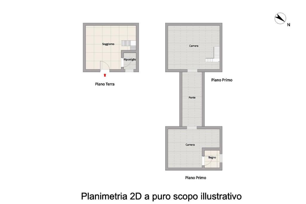L’abitazione è suddivisa in due porzioni distinte, non comunicanti internamente, caratteristica che permette una gestione indipendente degli spazi.