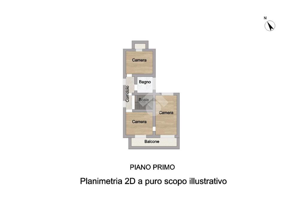 Una scalinata ci porta al piano primo composto di: tre camere tutte con affaccio su balcone e infine un bagno finestrato con vasca.