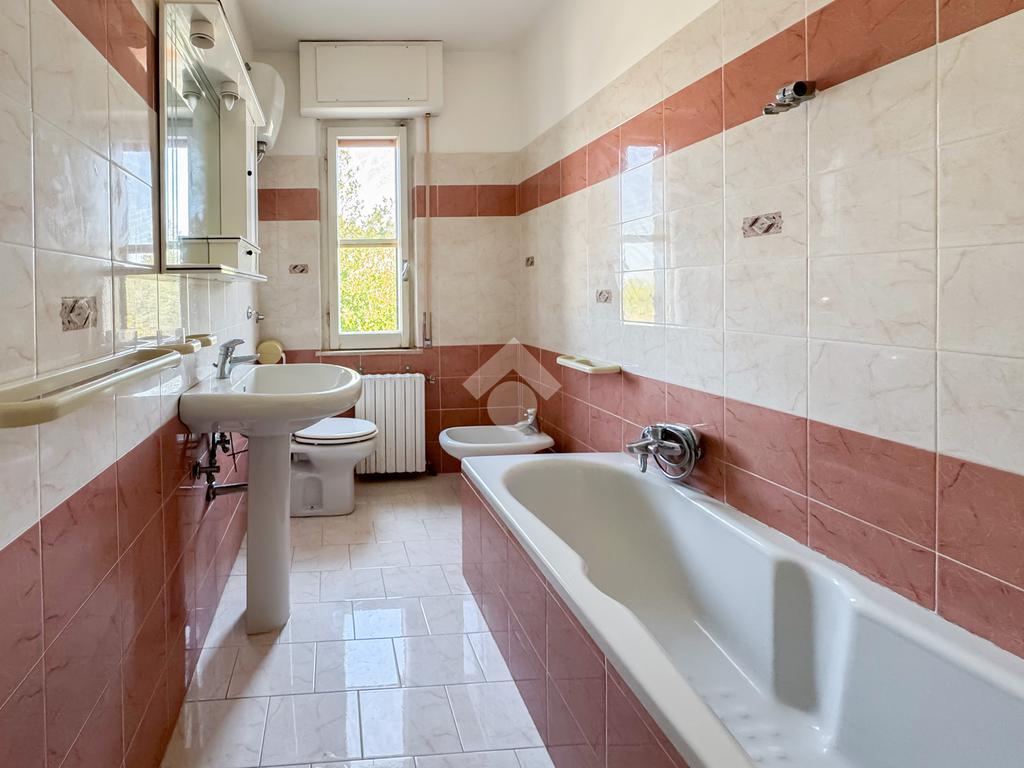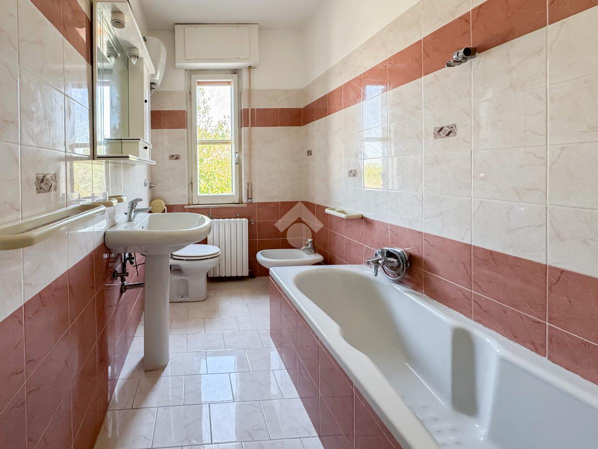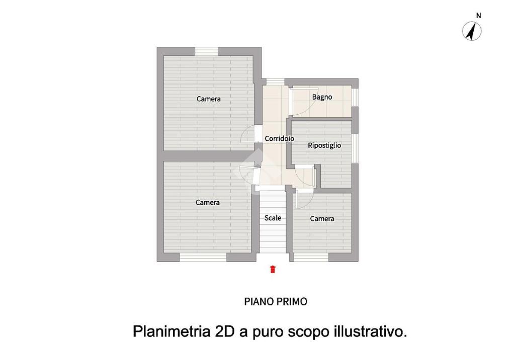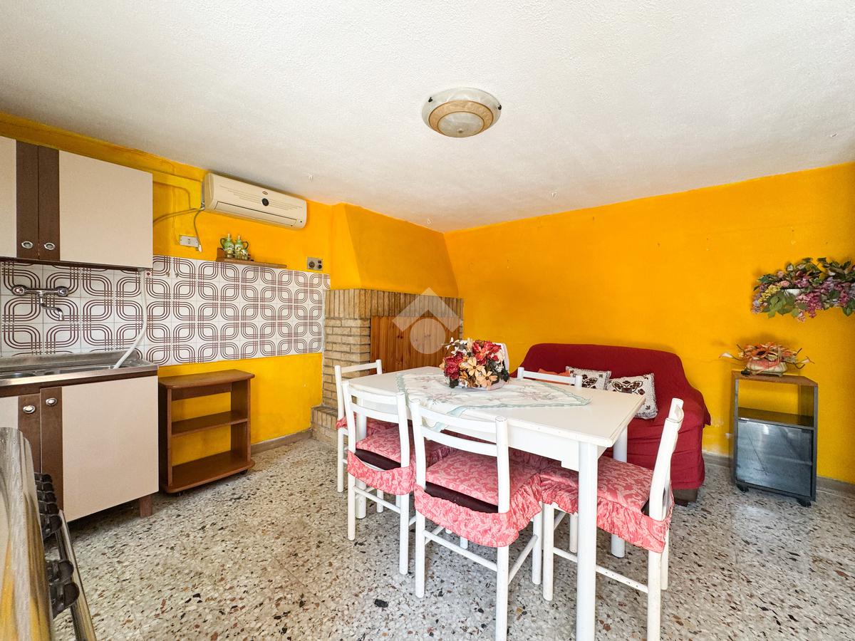 L'abitazione presenta questa distribuzione: cucina abitabile, soggiorno, tre camere da letto, un bagno finestrato con vasca e un ripostiglio.